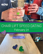 Celebrate Valentine’s Day with Chair Lift Speed Dating! Guests will receive a colored heart pin to attach to their goggles, with each color signaling who they’re interested in meeting. It’s an easy way to spot potential matches before hopping on the lift. Speed dating runs from 6:00–7:00 PM, with quick chats and scenic rides that make breaking the ice feel effortless. Afterward, from 7:00–8:00 PM, join us in The Lodge for a cozy cocktail hour, perfect for continuing lift ride conversations or sparking new ones. This event is 21+, and each guest will receive their first drink on the house, with dinner specials available to round out the evening. Come ready to mingle, laugh, and maybe even meet your mountain match! https://shop.echomtn.com/speeddating